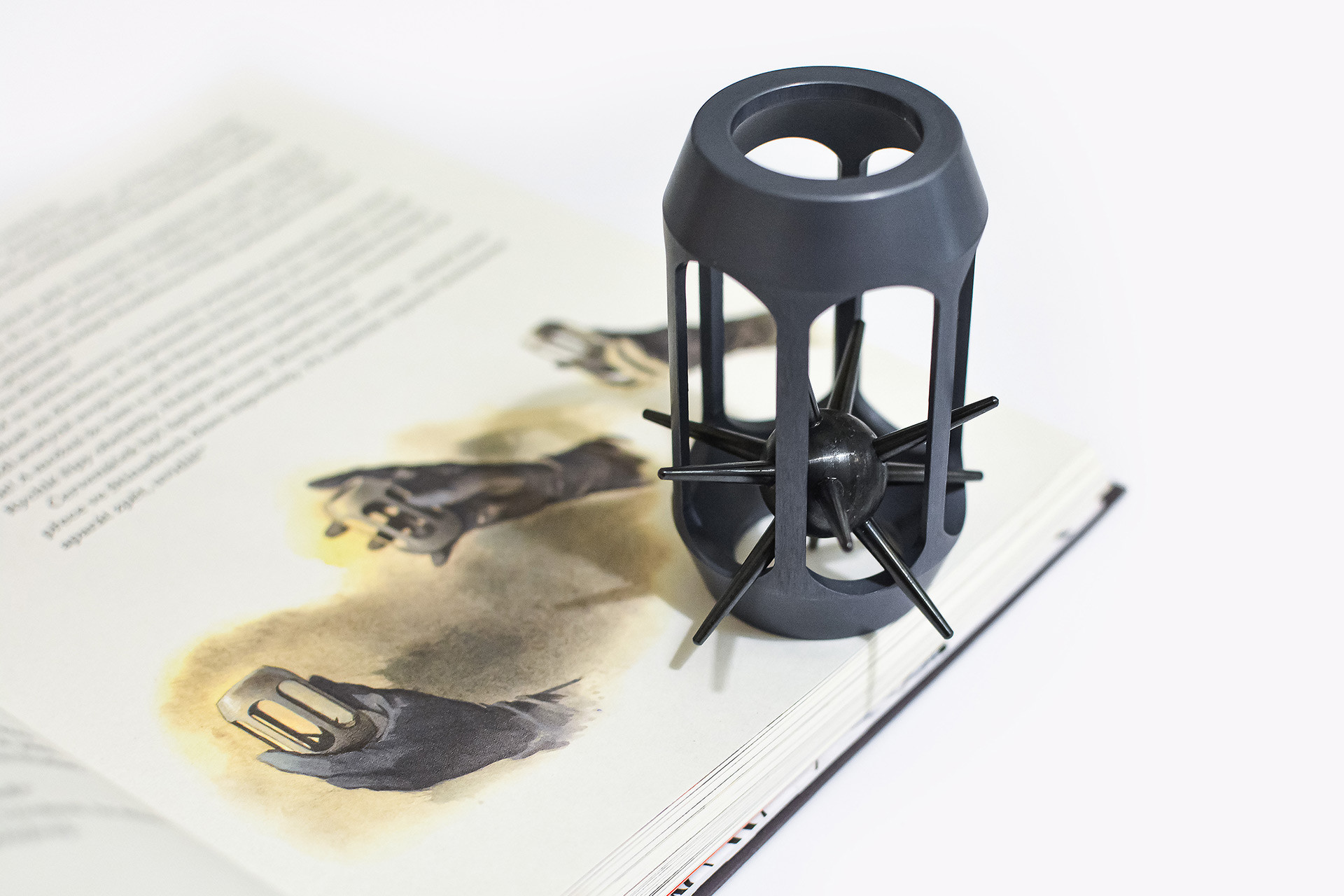 Legendární hlavolam je věrohodným ztvárněním ježka v kleci podle novodobých ilustrací Jiřího Gruse ke stínadelské trilogii. Ježek je nerozšroubovatelný.