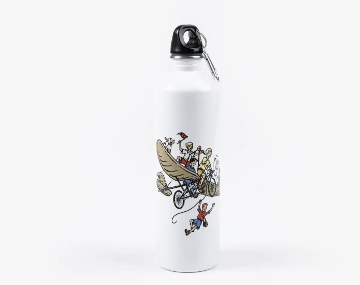 Kovová láhev o objemu 0,3 litru s ilustrací Karla Jerieho.