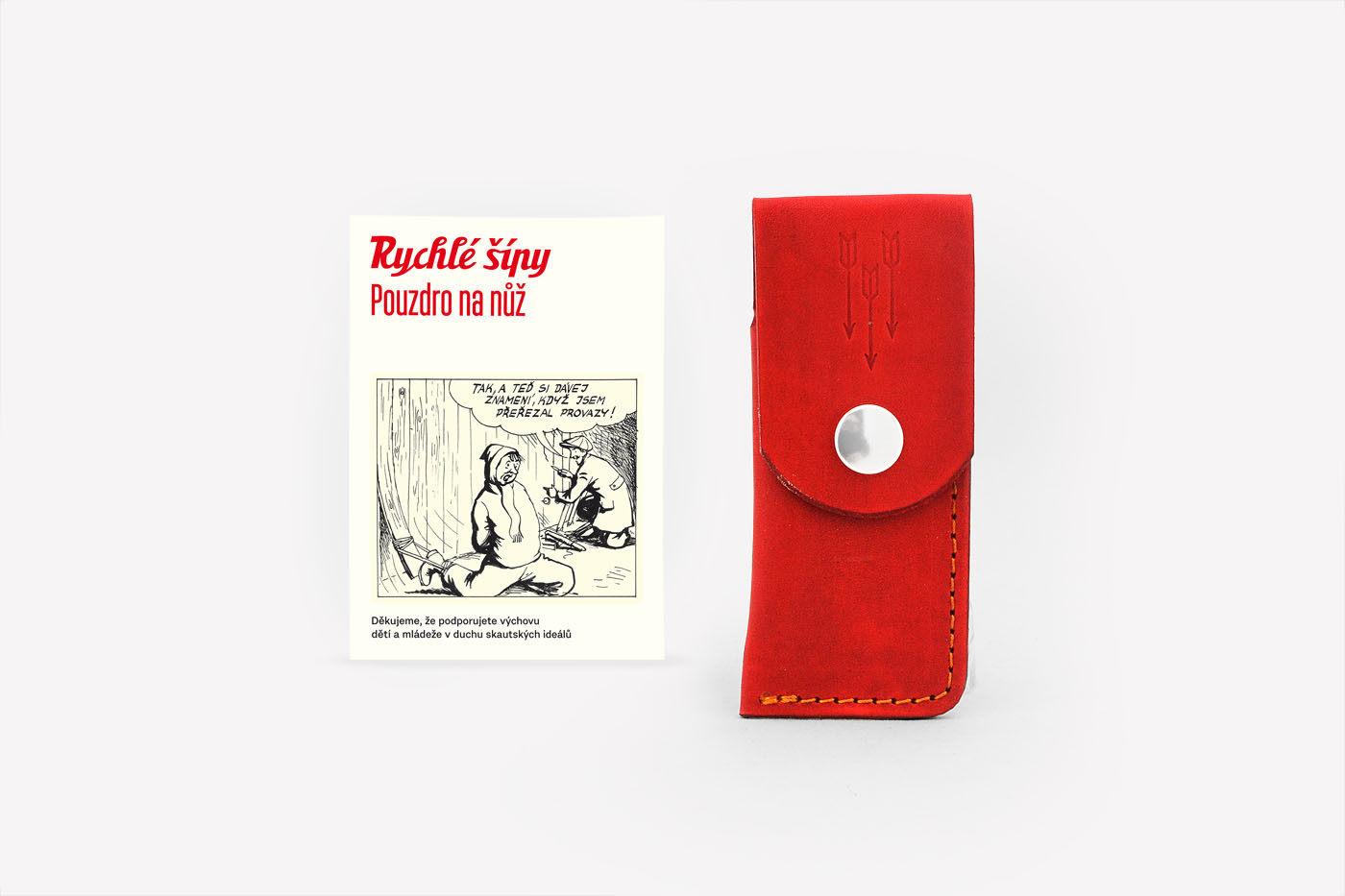 Každý správný chlapec Rychlých šípů i děvče z Podkovácké party má jistě v kapse nůž, ale mnohým z nich by se k němu ještě hodilo pouzdro na opasek. Proto jsme jedno stylově šípácky červené, s jejich znakem, nechali vyrobit u dílny EGGO.