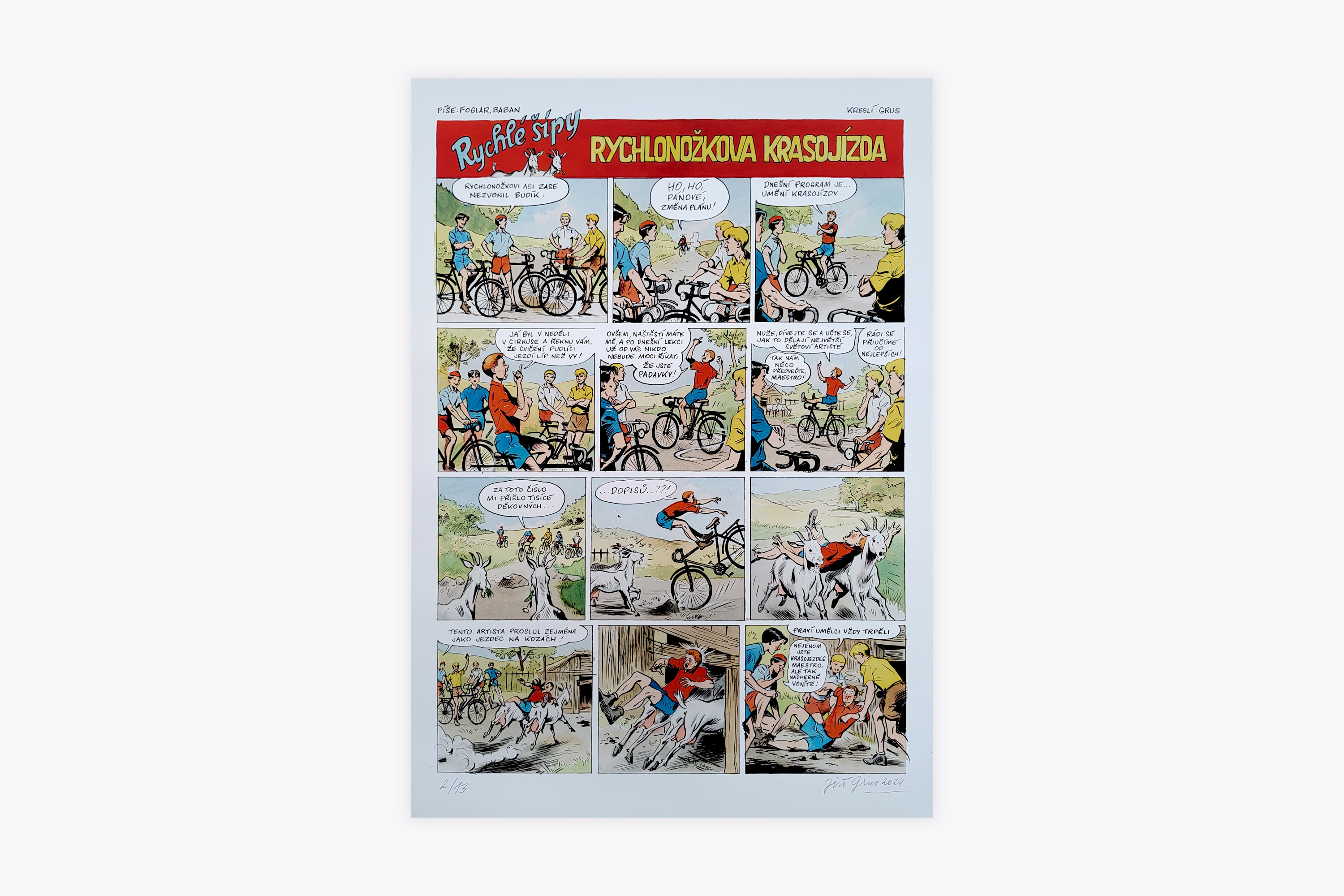 Velkoformátová reprodukce komiksu Rychlých šípů Jiřího Gruse